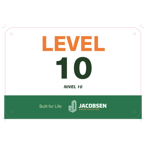 A 12"x18" sign with rounded corners and grommets.